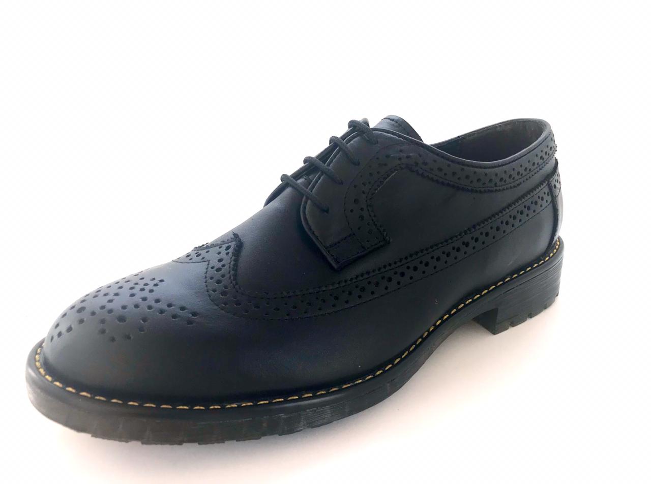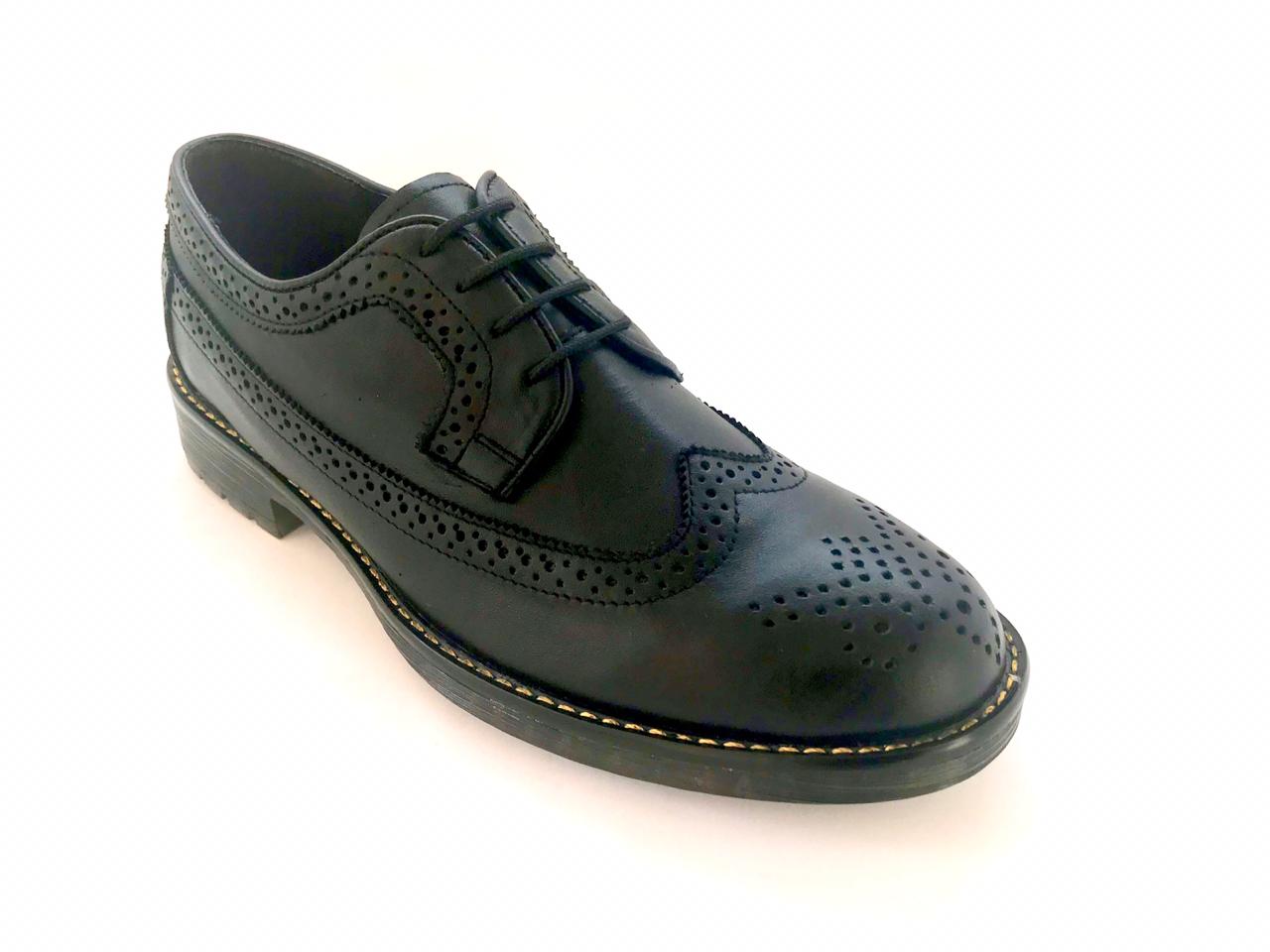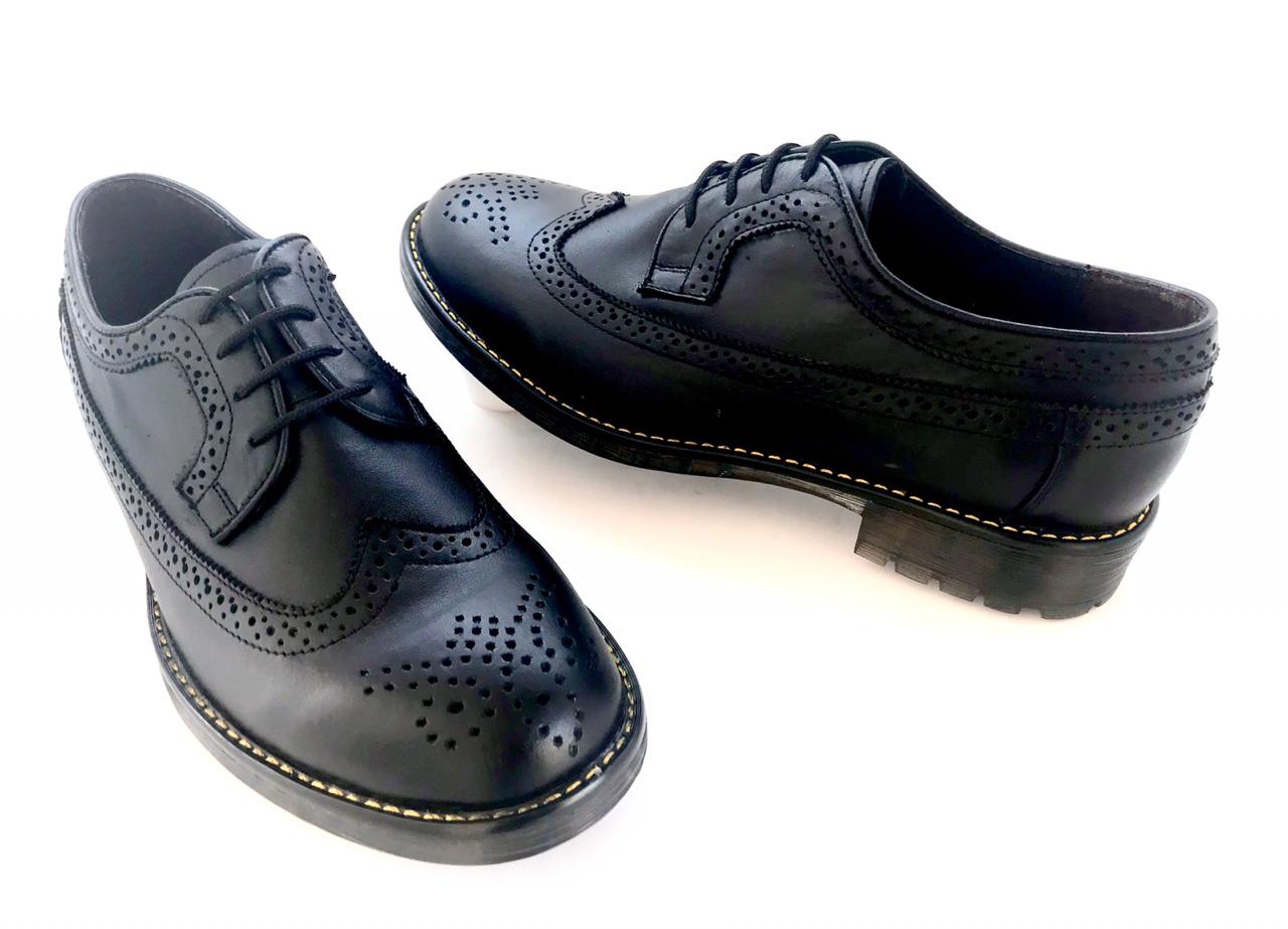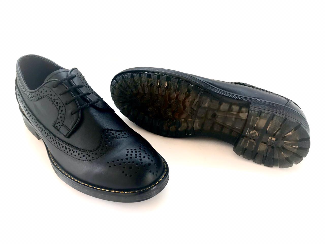 Calzado Derby Urbano tipo bostoniano Brogue de Bigotera (Long Wingtips) en combinación de piel lisa y piel tipo Floter con algunos cortes escamados, suela tipo goma que ofrece flexibilidad y comodidad, mezcla elementos de tradición y modernidad.