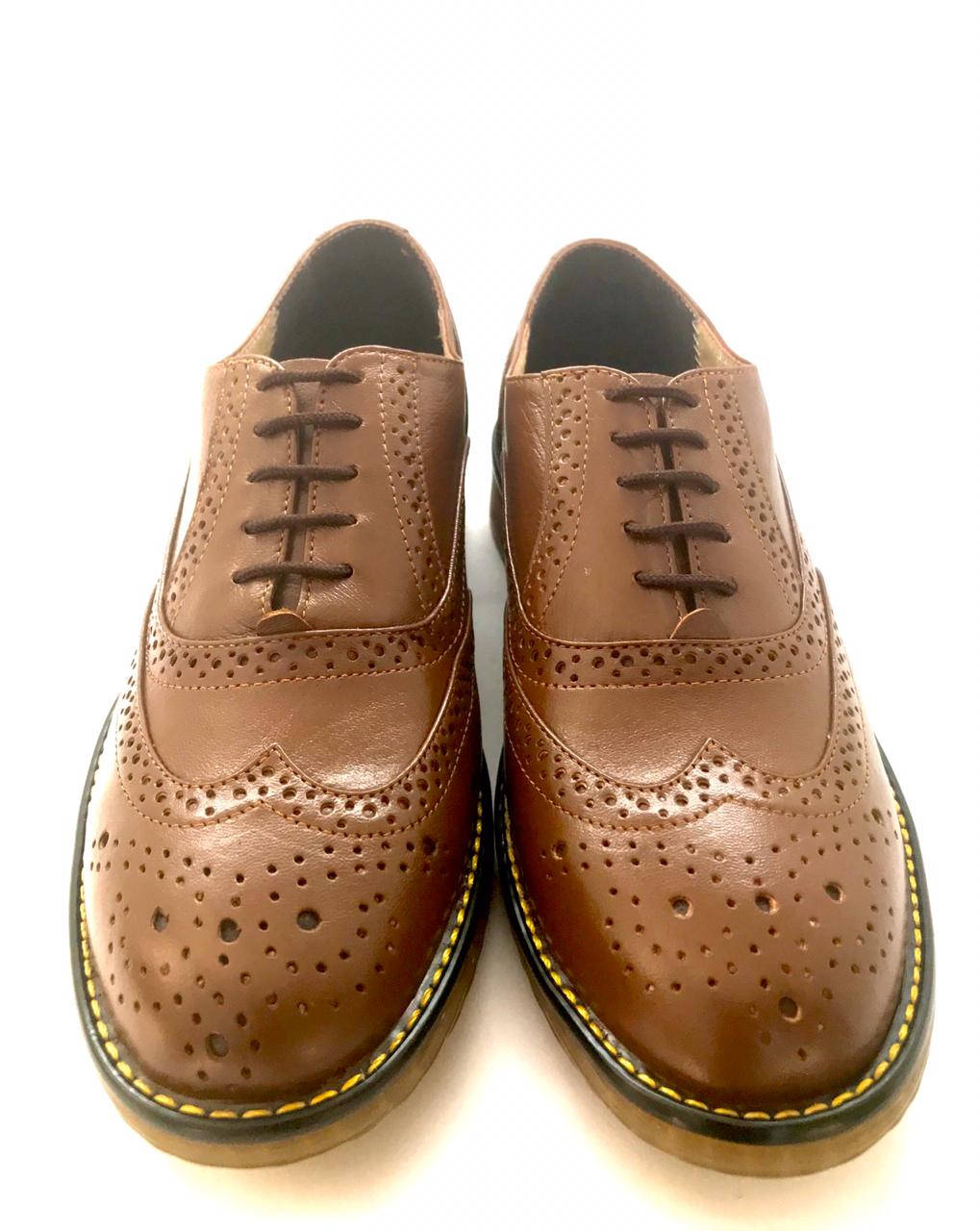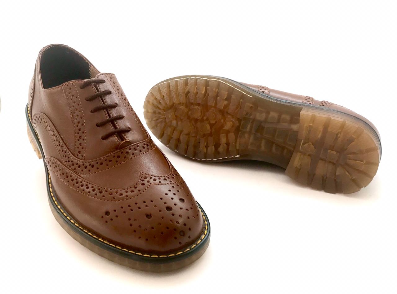 Calzado Oxford Urbano tipo bostoniano Brogue de Bigotera (Wingtips) en piel lisa, suela tipo goma que ofrece flexibilidad y comodidad, mezcla elementos de tradición y modernidad.
