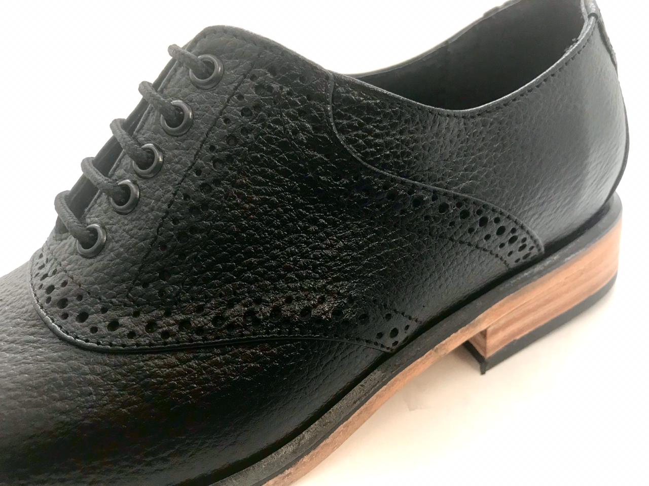 Corte: Vacuno tipo Floter Color: Negro Suela: Cuero Tacón: Cuero con base de firme