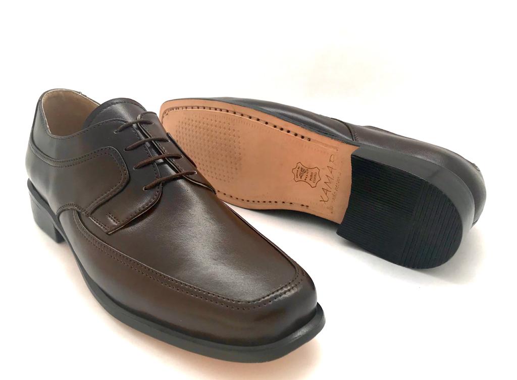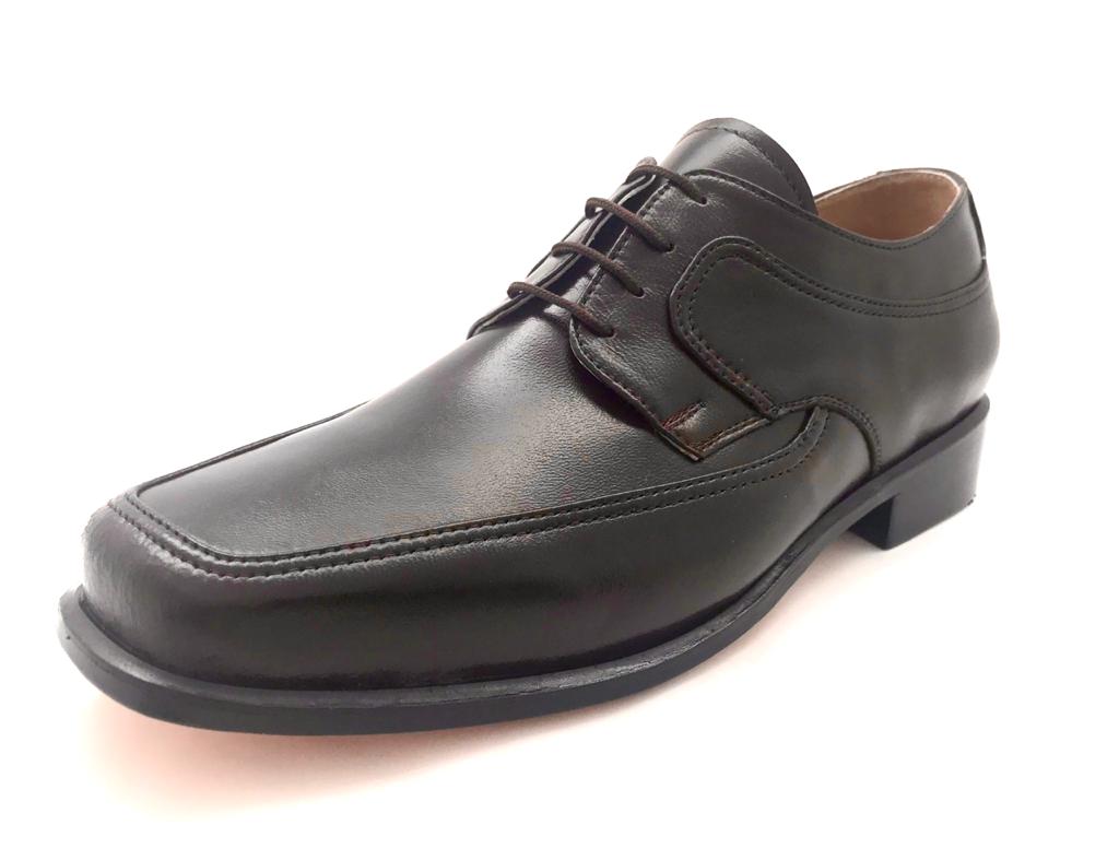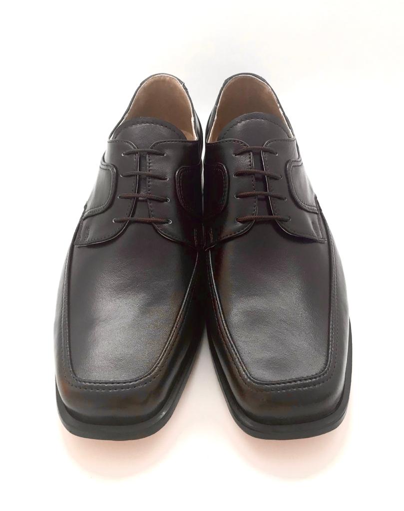 Zapato Derby de punta cuadrada en suave piel lisa de cabra, es un calzado entre formal y casual, con un diseño de líneas depuradas lo que lo hace un calzado ideal para la oficina.